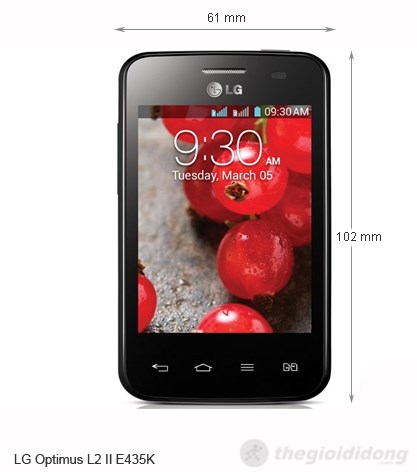 LG Optimus L2 II E435K là một smartphone giá rẻ chạy hệ điều hành Android tiên tiến. Thiết bị có đầy đủ tính năng như kết nối mạng bằng Wifi/3G, lướt web nhanh chóng, cập nhật facebook, ghi chú nhanh và đặc biệt là máy có thiết kế rất gọn nhẹ, thích hợp cho những bạn nữ với bàn tay thon nhỏ để dễ dàng cầm nắm và sử dụng.