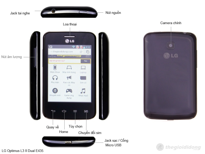 Một smartphone giá rẻ, cảm ứng, chạy hệ điều hành Android mới, lướt web nhanh chóng và hỗ trợ 2 sim chính là những gì mà LG Optimus L3 II Dual E435 sẽ mang lại cho bạn.