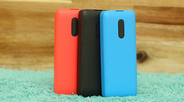 Máy có 3 màu sắc căn bản cho bạn lựa chọn theo sở thích, mặt lưng có logo hãng Nokia được đặt trong vòng tròn oval đen khá nổi bật