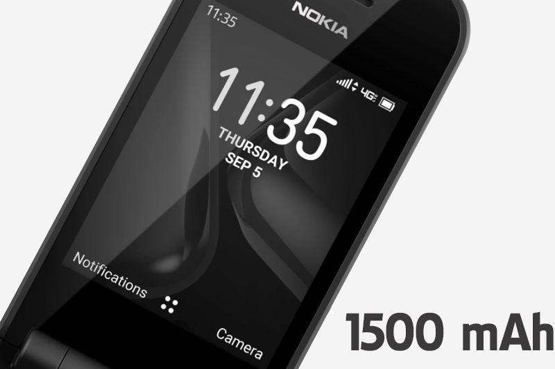 Điện thoại có pin với dung lượng 1500 mAh cho thời gian sử dụng lâu dài với đàm thoại liên tục trong nhiều giờ và khả năng chờ lên đến 26 ngày với một lần sạc đầy mà không lo lắng về vấn đề pin.