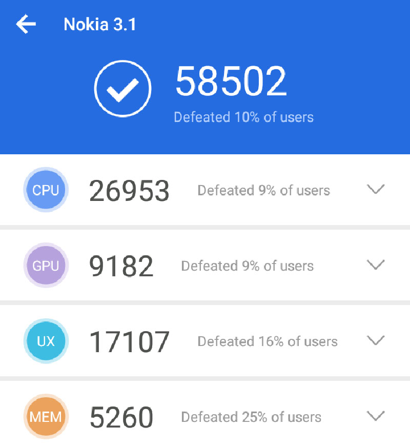 Điểm hiệu năng điện thoại Nokia 3.1 32GB