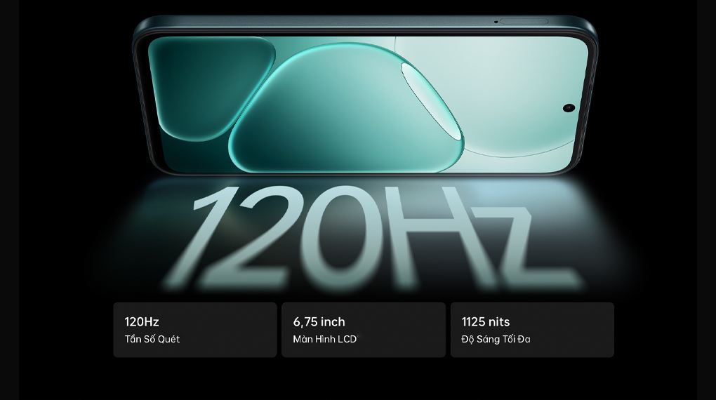 Màn hình LCD kích thước 6.75 inch trên OPPO A6 hỗ trợ tần số quét lên đến 120 Hz. Thông số kỹ thuật này giúp các thao tác vuốt chạm, cuộn trang tin tức và chuyển cảnh trong ứng dụng trở nên mượt mà hơn đáng kể. Độ phân giải HD+ (720 x 1570 pixels) đảm bảo khả năng hiển thị nội dung chi tiết, màu sắc trung thực và sắc nét trong các tác vụ giải trí đa phương tiện hàng ngày.