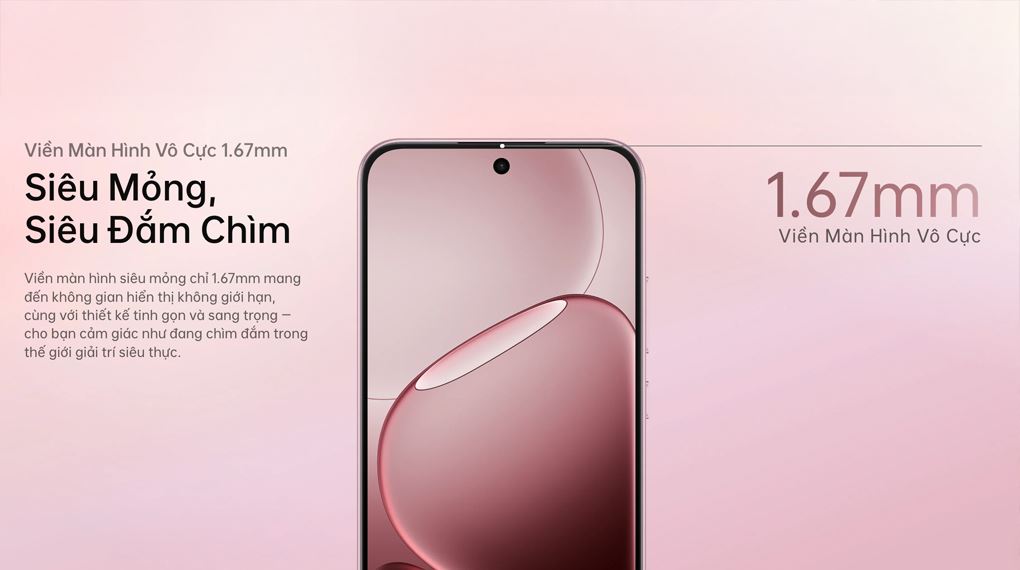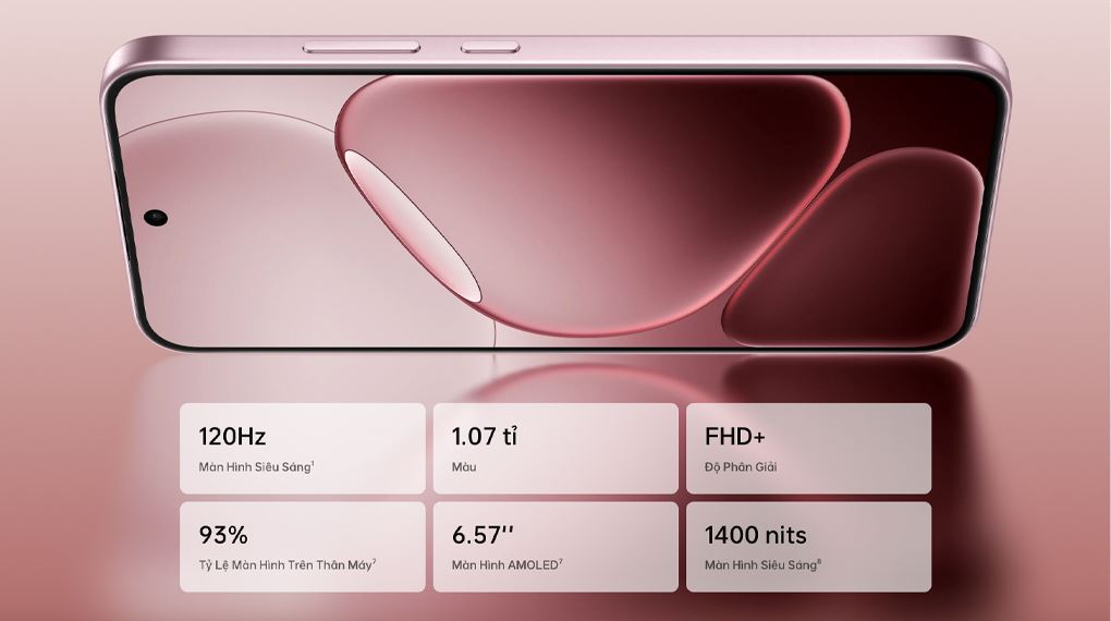 OPPO A6 Pro 5G sở hữu màn hình AMOLED 6.57 inch Full HD+ (1080 x 2372), cho chất lượng hiển thị rõ nét và chi tiết. Nhờ khả năng tái tạo 1.07 tỷ màu, hình ảnh trở nên rực rỡ và tự nhiên hơn. Tỷ lệ hiển thị lên tới 93% giúp không gian nhìn rộng rãi, mang lại trải nghiệm thoải mái khi xem phim, giải trí hay chơi game.