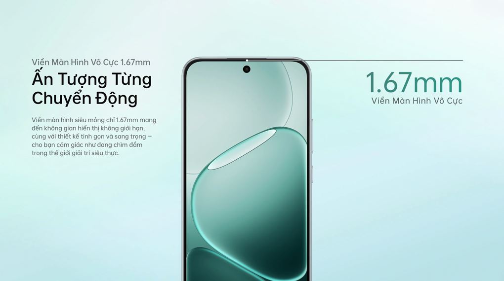 OPPO A6 Pro với viền màn hình mỏng 1.67 mm, giúp mở rộng không gian hiển thị, mang lại trải nghiệm xem trọn vẹn hơn