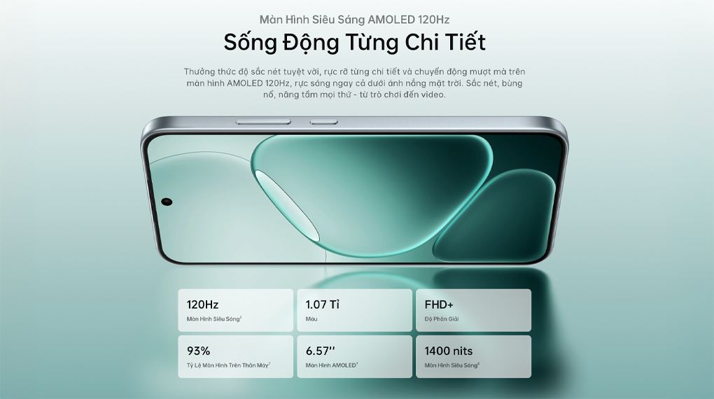 Màn hình đạt độ sáng 600 nits và có thể tăng lên 1400 nits ở chế độ HBM, giúp bạn nhìn rõ nội dung ngay cả dưới nắng gắt. Khả năng hiển thị 1.07 tỷ màu (10-bit) cho màu sắc sâu, chính xác và sống động, mang đến trải nghiệm xem phim, ảnh và nội dung đa phương tiện trực quan hơn, giàu chi tiết hơn.