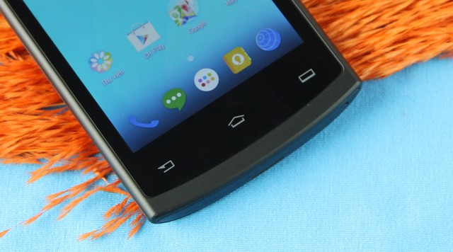 Mặt trước phía dưới có 3 phím cảm ứng rất nhạy, là 1 yếu tố đặc trưng của hệ điều hành Android: “quay về, home, tùy chọn”