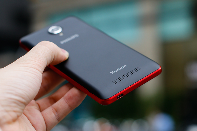 Philips V377 chính hãng được bán ra ở Việt Nam duy nhất có thiết kế vỏ màu đen sang trọng kèm khung viền đỏ nổi bật. Theo đánh giá người dùng, máy vẫn rất thon gọn và cầm chắc tay, mặt lưng có độ bám tốt, không bị trơn trượt.