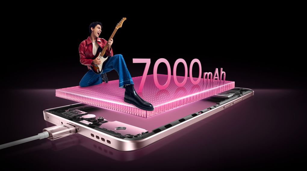 Thiết bị sở hữu viên pin Titan dung lượng 7000 mAh, cho thời gian sử dụng rất dài. Theo thử nghiệm từ realme Lab, máy có thể nghe nhạc đến 83 giờ, xem video 22 giờ hoặc chơi game liên tục gần 10 giờ. Viên pin này giúp người dùng yên tâm sử dụng cả ngày dài mà không cần lo sạc giữa chừng.