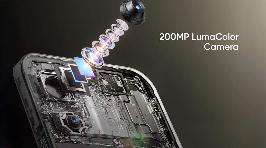 Hệ thống camera chính trên realme 16 Pro 5G sở hữu độ phân giải 200 MP cùng cảm biến Samsung HP5 kích thước 1/1.56 inch cao cấp. Công nghệ LumaColor giúp máy tối ưu hóa tông màu da và tái tạo ánh sáng đổ bóng một cách tự nhiên nhất cho người dùng. Ngoài ra, máy hỗ trợ zoom 1x và 2x không giảm chất lượng, giúp phóng to ảnh vẫn rõ nét.