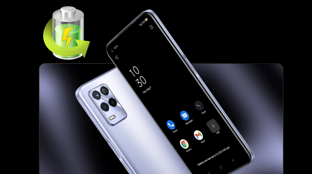 Realme 8s hỗ trợ công nghệ sạc nhanh 33 W với dòng điện thấp và điện áp cao có khả năng bảo vệ sạc an toàn gấp 5 lần và rút ngắn thời gian sạc tối đa.