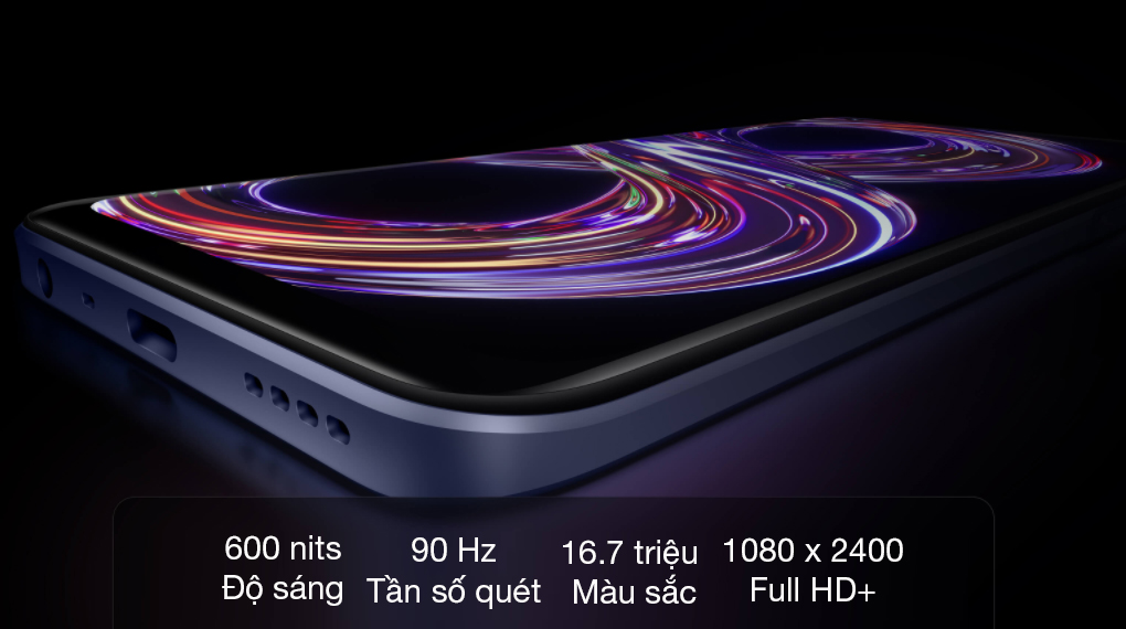 Màn hình trên Realme 8s có kích cỡ 6.5 inch, sử dụng tấm nền IPS LCD, hỗ trợ độ phân giải Full HD+ cho hình ảnh hiển thị được rộng mở, chất lượng sắc nét nâng cao trải nghiệm cho người dùng.