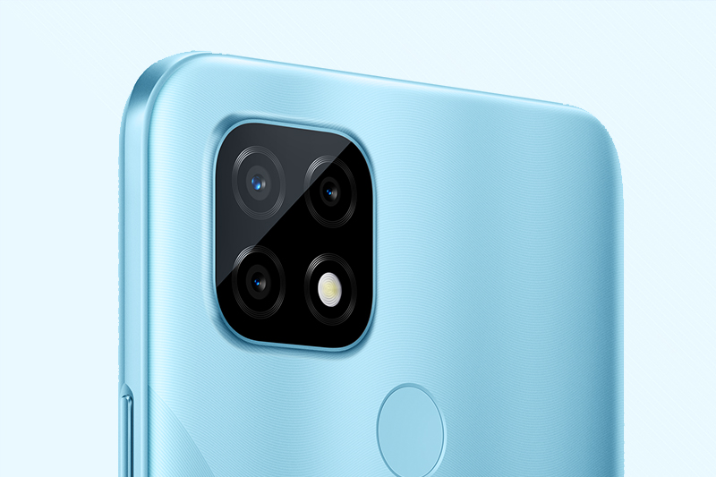 Chiếc điện thoại Realme C21 có 3 camera mặt sau nằm gọn trong khung vuông, đi kèm đèn LED flash chiếu sáng như một chiếc đèn pin nhỏ, với camera chính có độ phân giải 13 MP, camera macro 2 MP và camera đo độ sâu 2 MP.