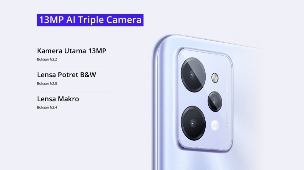 Realme C31 được trang bị hệ thống 3 camera ở phía mặt lưng, trong đó có một cảm biến chính 13 MP với khẩu độ f/2.2, đi cùng ống kính macro và cảm biến chiều sâu.