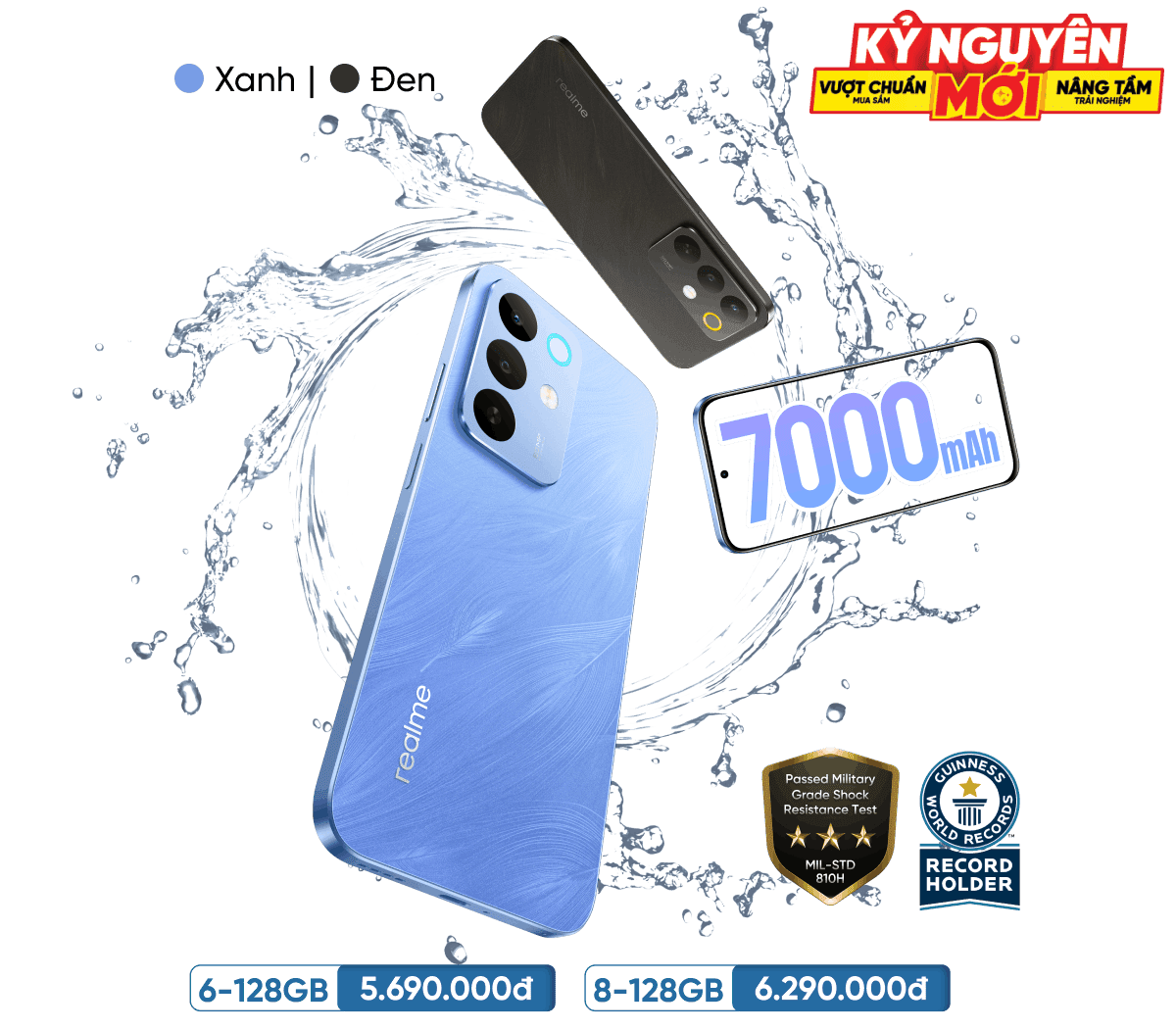 realme C85 đạt chuẩn quân đội MIL-STD 810H giúp chịu được va đập đa góc độ, đảm bảo máy luôn bền bỉ trước các tác động vật lý