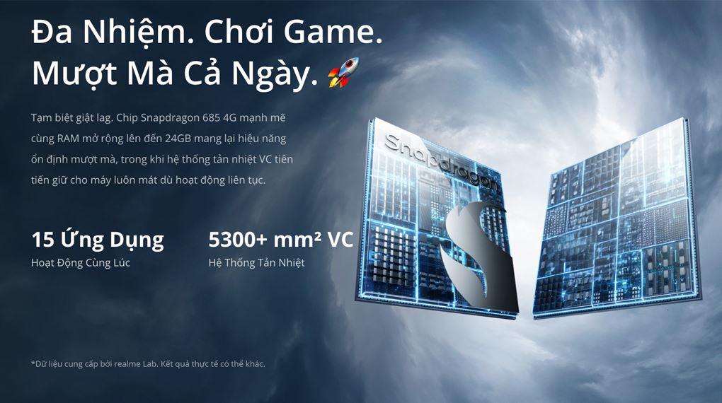 realme C85 Pro được cung cấp sức mạnh bởi vi xử lý Snapdragon 685, mang lại hiệu năng ổn định và tối ưu hóa năng lượng. Máy có thể xử lý mượt mà các tác vụ thường ngày như lướt mạng xã hội, xem video hoặc làm việc văn phòng. Dù không tập trung vào các tựa game đồ họa nặng, con chip này vẫn đáp ứng tốt các tựa game phổ thông với trải nghiệm ổn định và trơn tru.