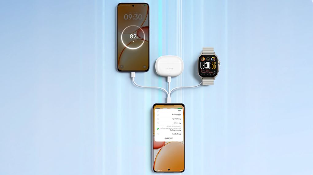 realme C85 Pro còn có tính năng sạc ngược 10W tiện lợi, cho phép bạn biến chiếc máy thành một trạm sạc di động. Chỉ cần cáp C-to-C, máy có thể sạc pin cho điện thoại khác, tai nghe hoặc đồng hồ thông minh khi cần thiết. Tính năng này mang lại sự linh hoạt và biến realme C85 Pro thành một người bạn đồng hành đáng tin cậy khi đi xa.