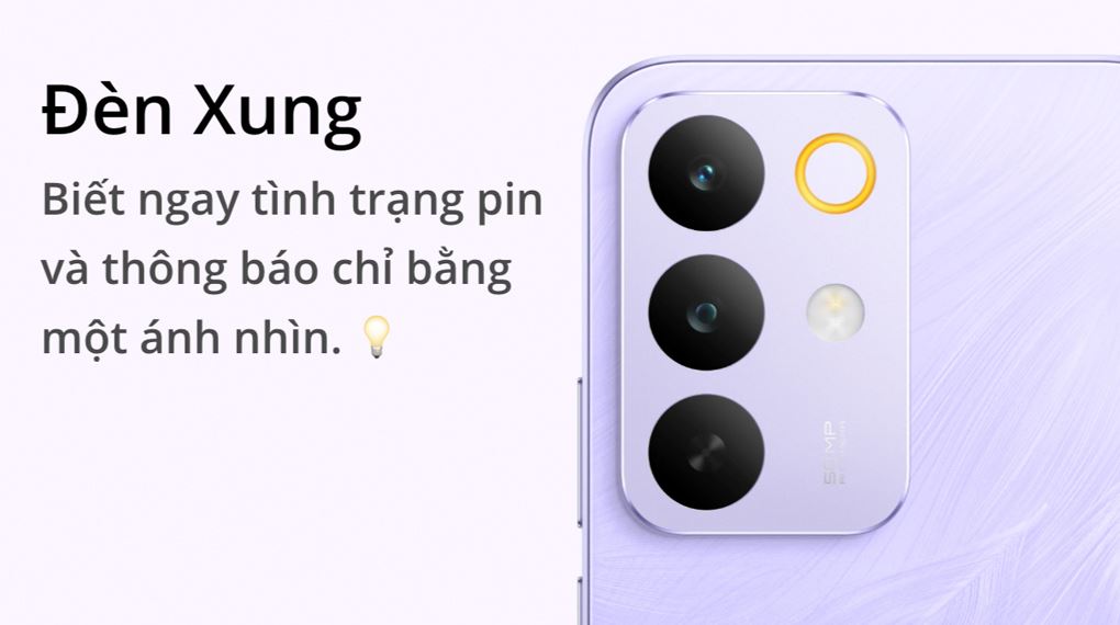 Một chi tiết đặc biệt trên realme C85 Pro là đèn xung thông minh được tích hợp tinh tế ở mặt lưng. Dải đèn này sẽ phát sáng để báo hiệu tình trạng pin và các thông báo quan trọng, giúp bạn cập nhật thông tin nhanh chóng mà không cần phải bật màn hình. Ngoài sự tiện lợi, đèn xung còn tạo nên điểm nhấn hiện đại và độc đáo cho ngoại hình của máy.