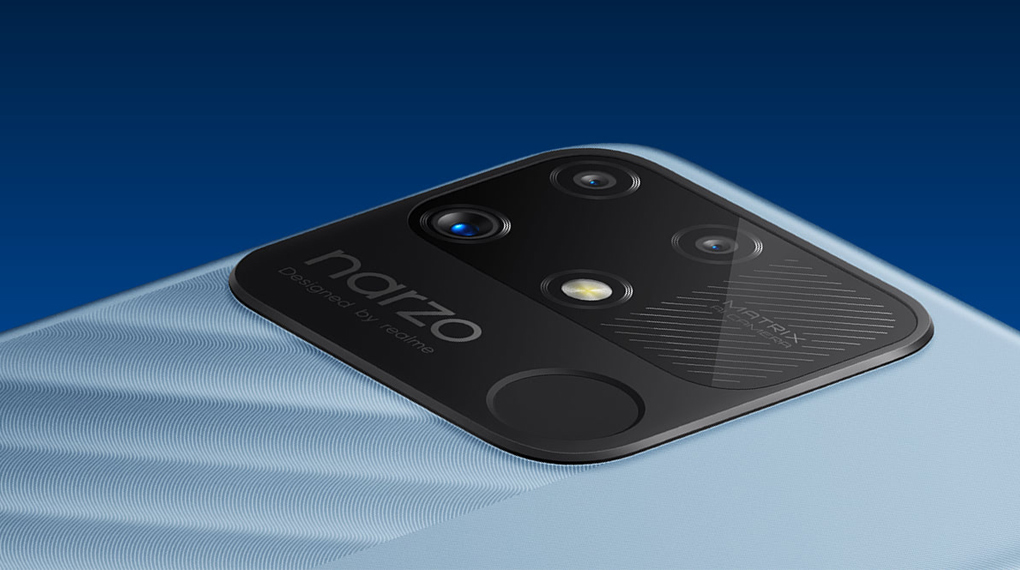 Realme Narzo 50A 4G được thiết kế với lớp vỏ nguyên khối, bao gồm 2 bản màu được giới thiệu là Oxygen Green và Oxygen Blue. Phần nắp lưng kết hợp họa tiết vân kẻ sọc dọc theo cụm camera tạo điểm nhấn nổi bật, trẻ trung, thêm sang chảnh và bắt mắt.