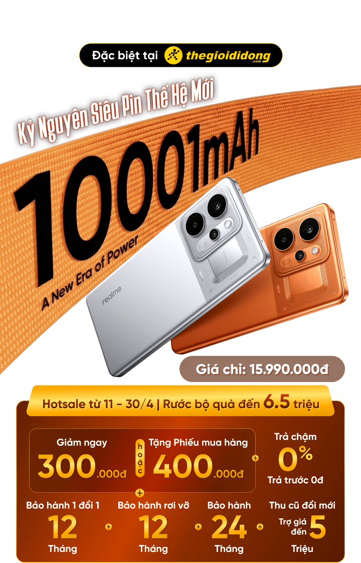 realme P4 Power 5G là mẫu điện thoại mới nổi bật với viên pin dung lượng lớn, hướng đến người dùng di chuyển nhiều hoặc game thủ cần hiệu năng ổn định và màn hình sáng. Bên cạnh đó, thiết kế thời trang kết hợp công nghệ AI giúp máy trở thành lựa chọn đáng cân nhắc trong phân khúc tầm trung.