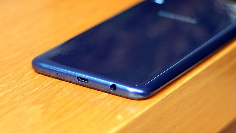 Samsung Galaxy A10e có thiết kế bo tròn với màn hình tràn viền kiểu "giọt nước" kiểu mới mà Samsung gọi đó là Infinity-V.