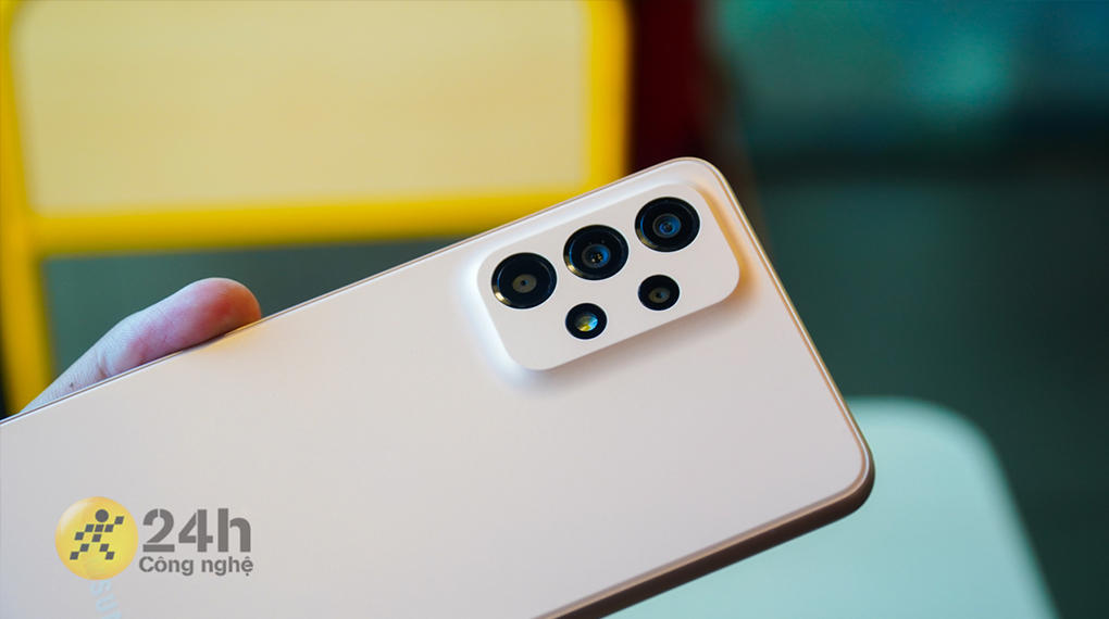 Tiếp theo là ấn tượng về Galaxy A33 là cụm 4 camera cùng đèn LED được bố trí trong cụm rất hợp bố cục và nhìn cực kỳ thích mắt. Không chỉ dừng lại ở việc trang bị nhiều camera, Samsung còn bổ sung cho máy nhiều tính năng chụp ảnh như: Toàn cảnh (Panorama), Trôi nhanh thời gian (Time Lapse), Xóa phông, Lấy nét theo pha (PDAF),...