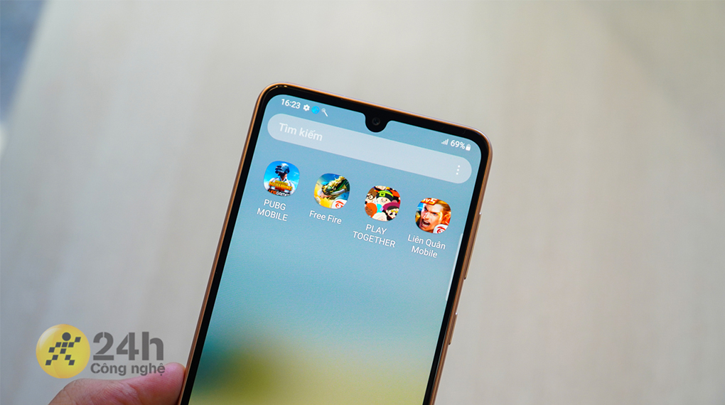 Galaxy A33 mang đến cho mình cảm giác cầm nắm rất thoải mái và nhẹ nhàng nhờ các cạnh được chế tạo bo cong, mình có sử dụng A33 để chơi game trong một khoảng thời gian dài nhưng không thấy xuất hiện tình trạng cấn tay như trên một vài sản phẩm có thiết kế vuông vức.