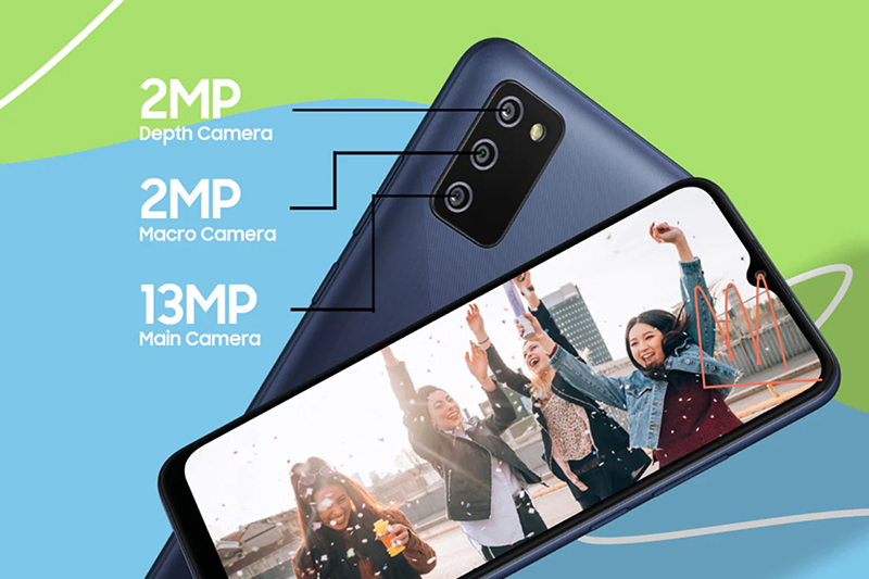 Galaxy F02s trang bị cụm 3 camera ở mặt sau gồm camera chính 13 MP, camera macro 2 MP và camera chiều sâu 2 MP, một thiết lập rất cơ bản đáp ứng tốt mọi nhu cầu chụp ảnh hiện nay.