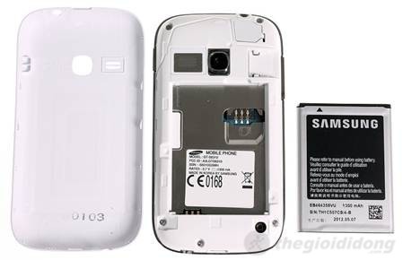 Thỏi pin 1300 mAh và nội thất bên trong Galaxy Young S6310