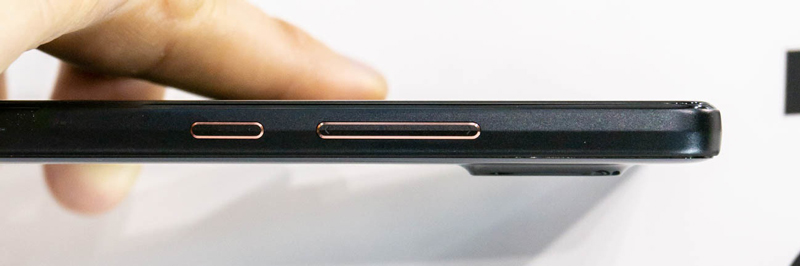 Các phím cứng được Sharp cắt kim cương vàng đồng sáng bóng giúp Aquos D10 trở nên nổi bật cũng như tạo điểm nhấn trong thiết kế.