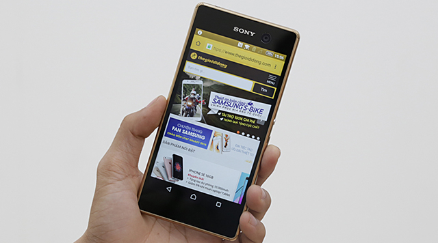 Màn hình của Xperia M5 trong và nét. Góc nhìn rộng và thể hiện màu sắc cũng sâu. Giảm đáng kể hiện tượng ám vàng như ở M4.