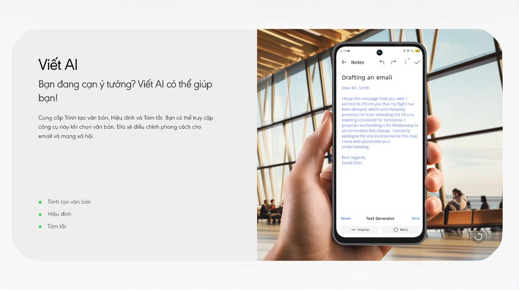 Máy chạy Android 15 với giao diện HiOS của Tecno, đi kèm một số công cụ AI tiện ích. Viết AI hỗ trợ tạo nội dung, chỉnh sửa và tóm tắt văn bản, còn Dịch AI cho phép dịch văn bản, giọng nói và hình ảnh qua nhiều ngôn ngữ. Những tính năng này giúp người dùng làm việc và giao tiếp thuận tiện hơn trong các tình huống hằng ngày.