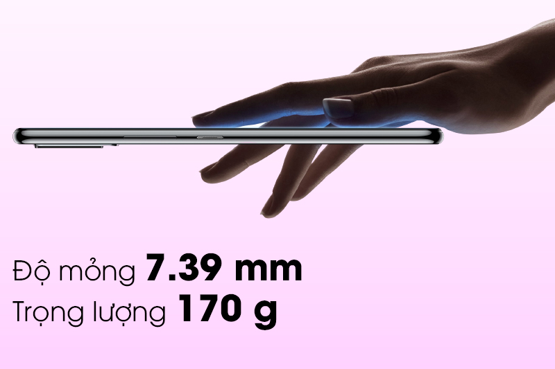 Nhẹ nhàng và mỏng đến bất ngờ khi có độ dày 7.39 mm và khối lượng chỉ 170g, kết hợp cùng sự bo cong mềm mại của các cạnh viền mang đến cảm giác cầm nhẹ, đầm tay.