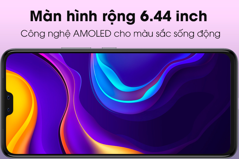 Vivo V20 Pro được trang bị màn hình AMOLED cho màu sắc sống động, chân thực, màn hình rộng 6.44 inch và tỉ lệ màn hình so với thân máy là 20:9, cùng thiết kế camera selfie kép tai thỏ làm tăng diện tích hiển thị đáng kể khi thao tác làm việc và giải trí trên điện thoại.