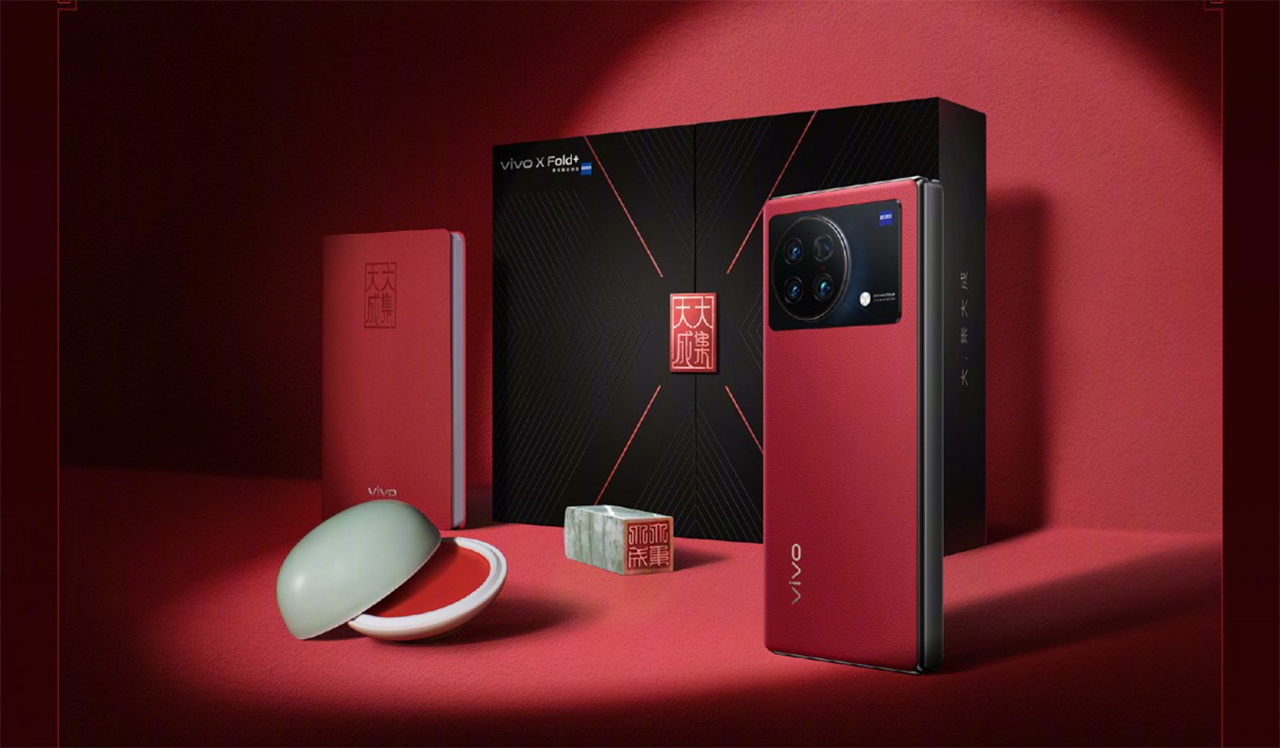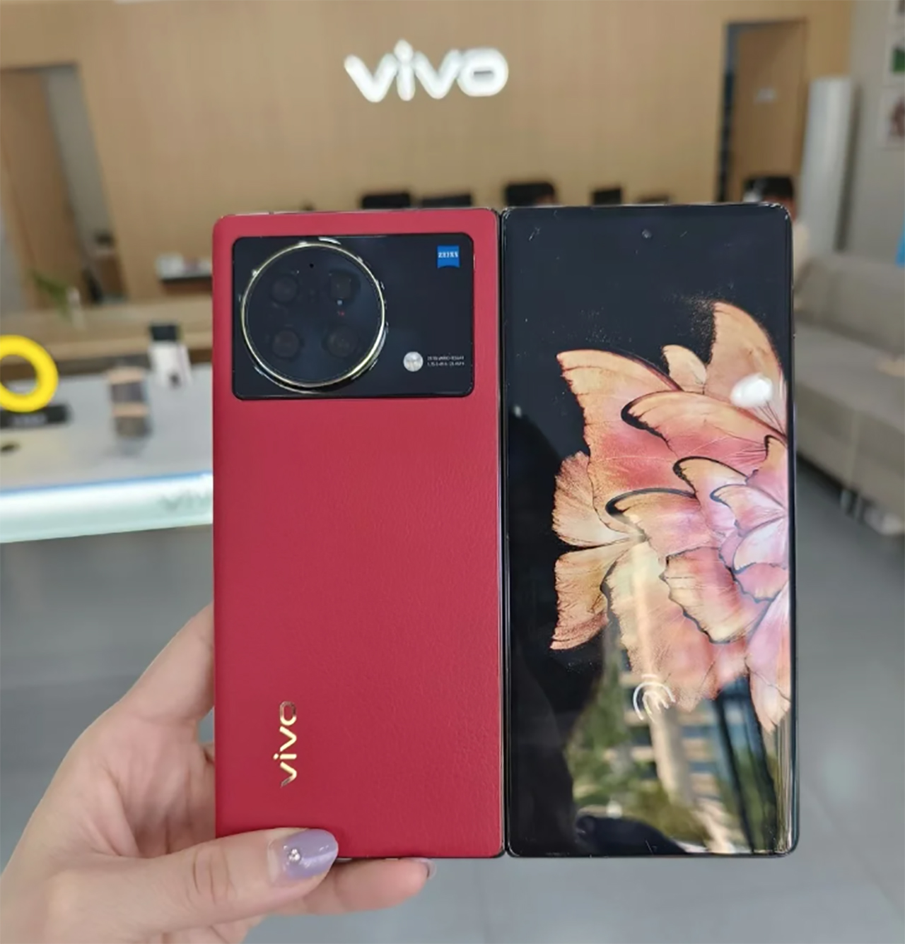 Thiết kế của Vivo X Fold Plus được hoàn thiện từ chất liệu da kết hợp với khung viền được phủ lớp sơn màu đen trông khá cao cấp. Điểm cộng của Vivo X Fold Plus là phiên bản màu đỏ được lấy cảm hứng từ Hoa Hạ, một loài hoa nổi tiếng ở Trung Quốc.