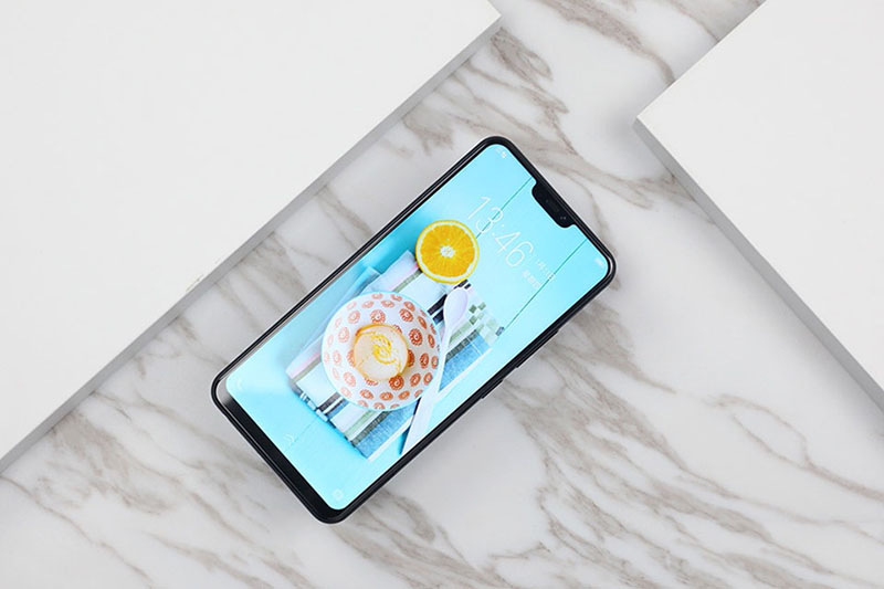Máy sử dụng thiết kế toàn màn hình theo xu hướng với kích thước 6.26 inch, tỷ lệ hiển thị 19: 9, phần viền màn hình mỏng giúp tổng thể máy không quá to.