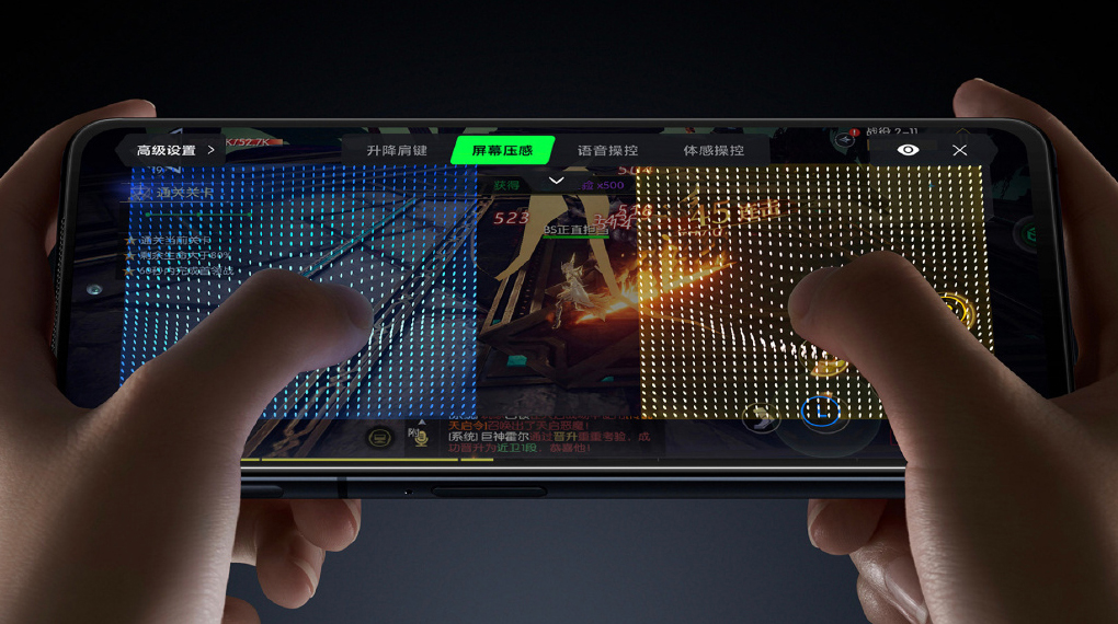 Đặc biệt, màn hình của Black Shark 4S cũng được nâng cấp thêm hai vùng cảm ứng lực để người dùng có thể thêm nhiều chức năng tùy chỉnh như điều chỉnh cường độ 7 mức và lập bản đồ thông minh, hay sử dụng làm phím tắt trong khi chơi game, cải thiện sự tiện lợi, thêm trải nghiệm thú vị khi thao tác và tham chiến trên màn hình điện thoại.