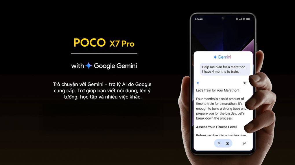 Ngoài các tính năng hình ảnh, Xiaomi POCO F7 Pro 5G còn hỗ trợ ghi chú AI, ghi âm AI và phiên dịch AI trực tiếp trong cuộc gọi. Những công cụ này giúp nâng cao năng suất làm việc và học tập của người dùng trở nên dễ dàng hơn. Thiết bị chạy trên hệ điều hành Xiaomi HyperOS 2 mang lại giao diện trực quan và sự kết nối liền mạch trong hệ sinh thái thông minh của người dùng hiện đại.