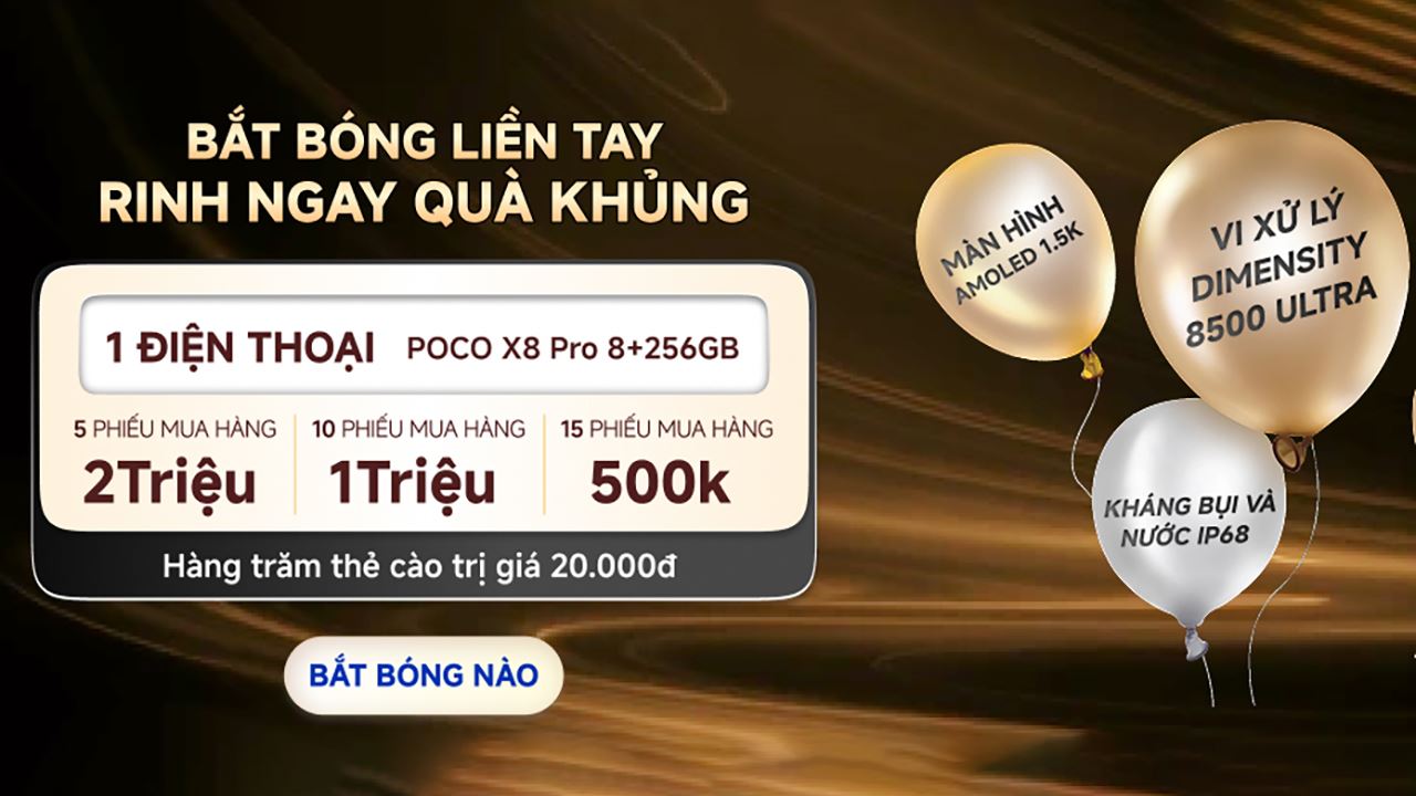 Bắt bóng liền tay - Rinh ngay quà khủng: Thao tác đơn giản, cơ hội trúng điện thoại POCO X8 Pro 256 GB