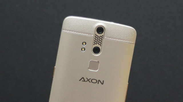 ZTE Axon có thiết kế nguyên khối, thân máy được gia công chế tác tỉ mỉ từ hợp kim Nhôm + Magie dùng trong ngành công nghiệp hàng không cho bộ bền và cứng cáp tốt, ở hai cạnh trên dưới được làm giả da trông khá lạ mắt.