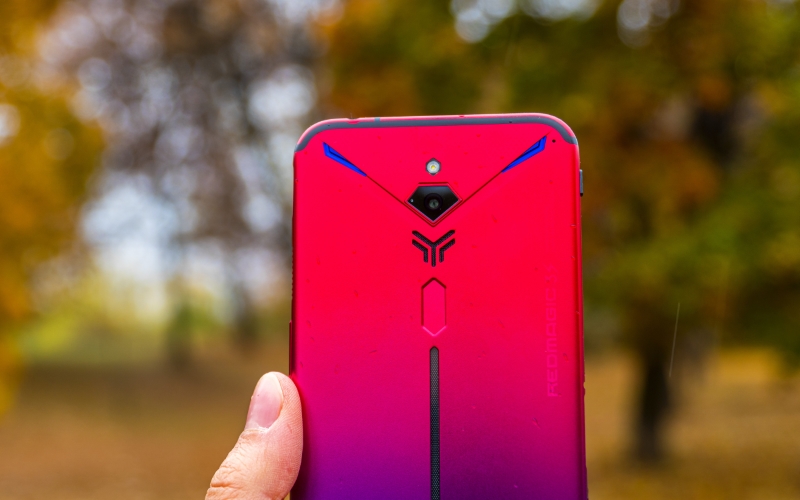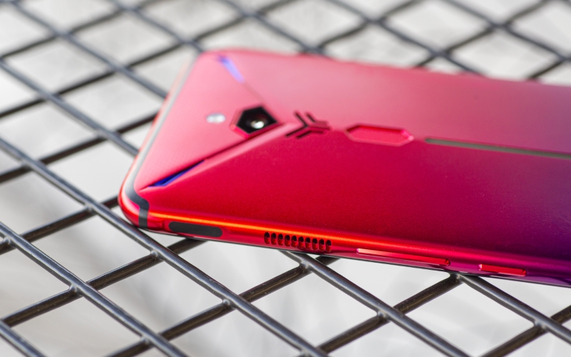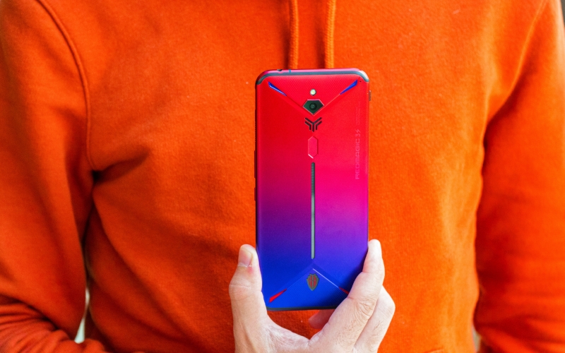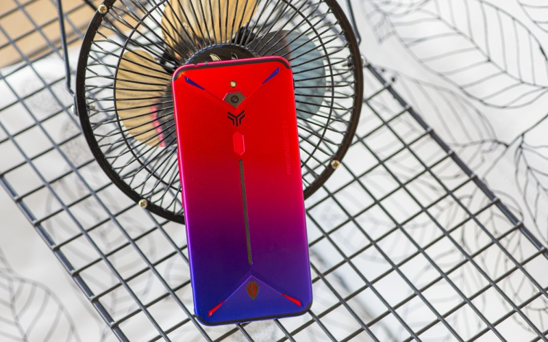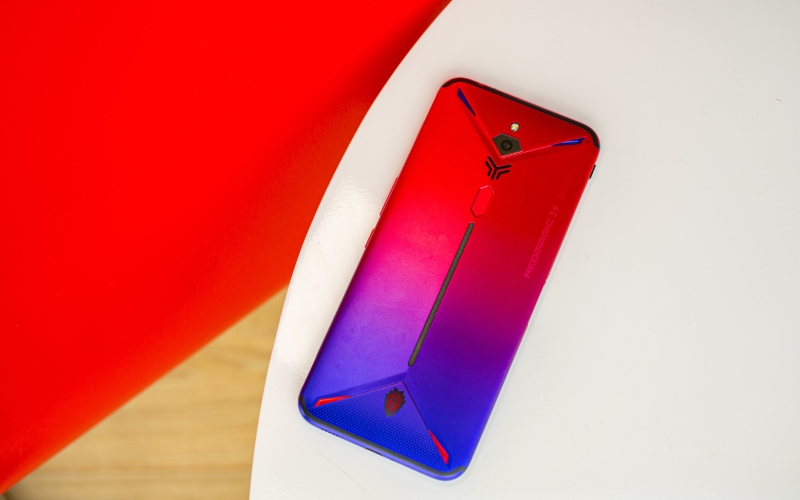 Mạnh mẽ nhưng không thô kệch, Red Magic 3S khoác lên mình màu sắc cũng khá sặc sỡ với hiệu ứng gradient chuyển màu từ xanh dương đến đỏ cùng dải đèn LED RGB được bố trí nhiều nơi trên mặt lưng có thể tùy chỉnh cực kỳ độc đáo.