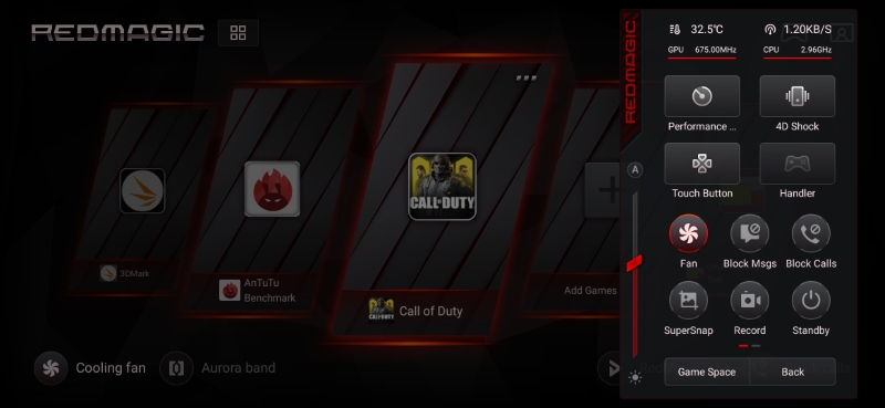 Sức mạnh của Red Magic không dừng lại ở phần cứng, bộ công cụ Game Space mới thực sự đáng quan tâm, rất nhiều tính năng được tích hợp bao gồm: hiển thị thông tin CPU, GPU, nhiệt độ, tốc độ mạng, tăng tốc CPU, GPU, kích hoạt chế độ rung 4D giả lập tương tác game,... đem lại cho bạn một trải nghiệm giải trí, chơi game tuyệt vời.