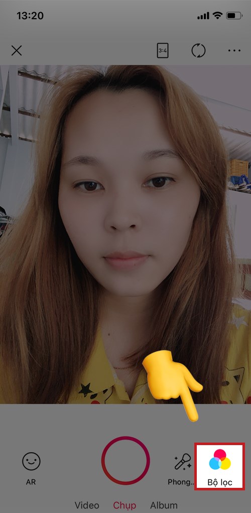 Bước 2: Lúc này, bạn muốn sử dụng bộ lọc thì nhấn vào mục Bộ lọc (biểu tượng ba màu vàng, xanh và đỏ).