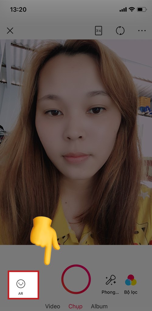 Bước 5: Đã có được bộ lọc bạn thích, bạn muốn sử dụng sticker (nhãn dán) hoặc biểu tượng cảm xúc đáng yêu trên khuôn mặt của mình, nhấn vào mục AR bên trái màn hình.