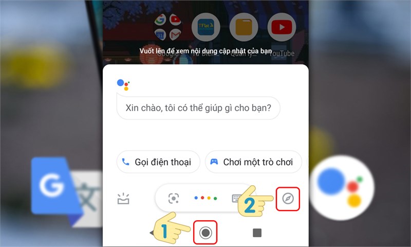 Bước 1: Các bạn mở Google Assistant bằng cách nhấn giữ phím Home trên thiết bị rồi nhấp vào biểu tượng la bàn.