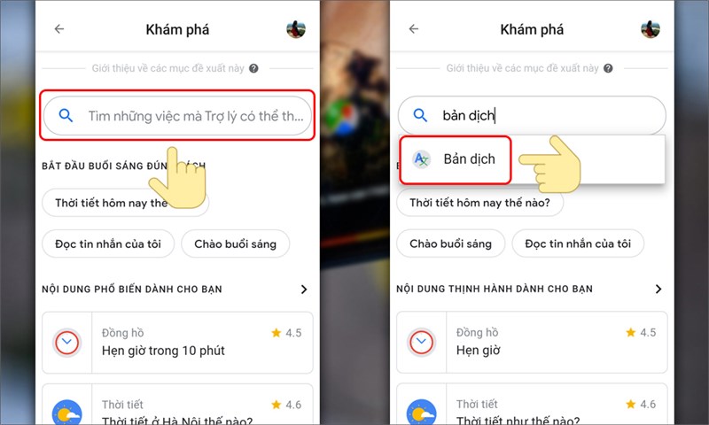 Bước 2: Vào thanh tìm kiếm nhập từ khóa Bản dịch và chọn kết quả vừa tìm được.