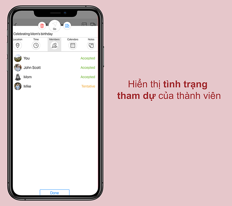 Sau đó, ứng dụng sẽ thông báo thời gian thực với các thành viên trong các nhóm lịch mà bạn tạo trước đó. Đây là ứng dụng đầu tiên cung cấp trải nghiệm lập lịch tức thời - cách thức hoạt động của lịch hiện đại.