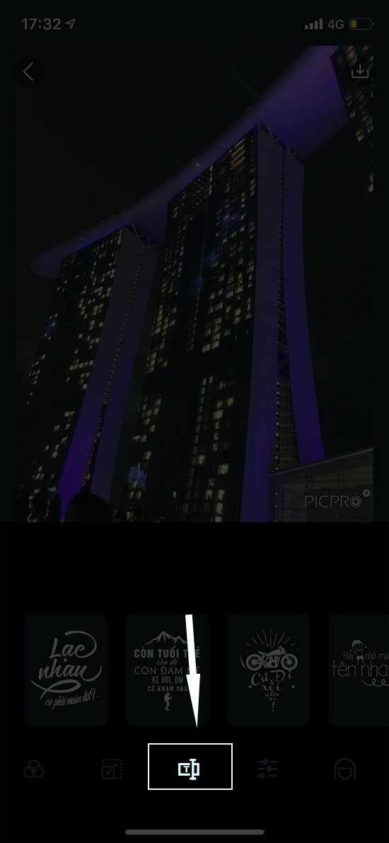Bước 3: Tiếp theo, tại giao diện trình chỉnh sửa ảnh, bạn chọn biểu tượng ghép chữ tại thanh bên dưới.