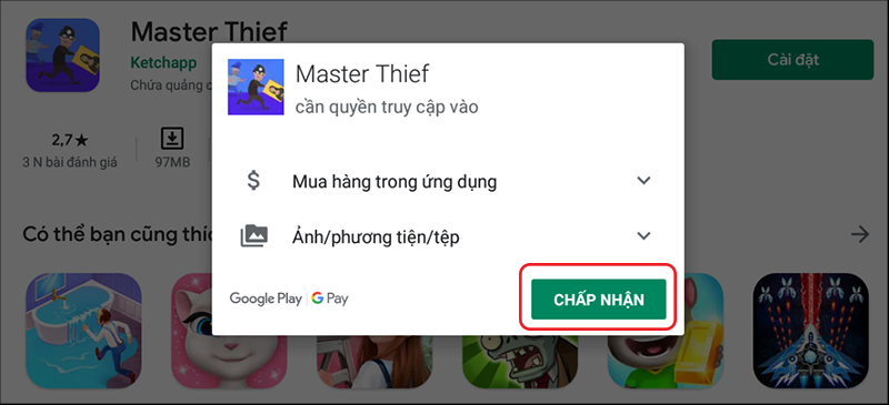 Bước 6: Nhấn Cài đặt > Chọn Chấp nhận
