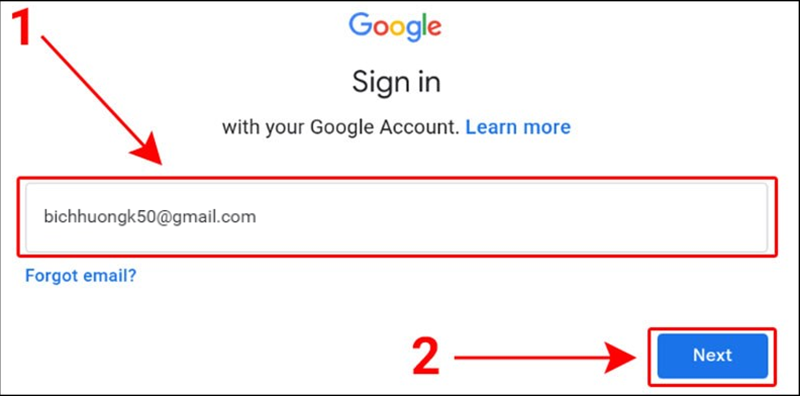 Bước 3: Nhấn Sign in > Nhập tài khoản Gmail > Nhấn Next > Nhập mật khẩu > Nhấn Next