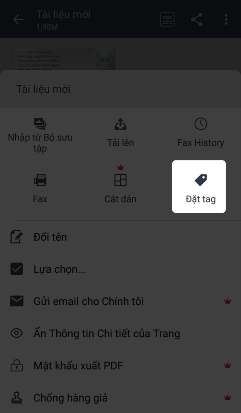 Ứng dụng hỗ trợ bạn Đặt Tag vào hình ảnh, file PDF bạn vừa quét được và tạo thư mục để phân loại các tài liệu của bạn. Giúp bạn quản lý và tìm kiếm tài liệu PDF, hình ảnh đã quét dễ dàng hơn và tiện lợi hơn.